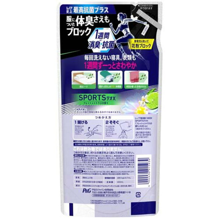 楽天市場 レノア 超消臭1week 柔軟剤 Sportsデオx フレッシュシトラスブルー 詰め替え 400ml 8袋セット レノア超消臭 楽天24